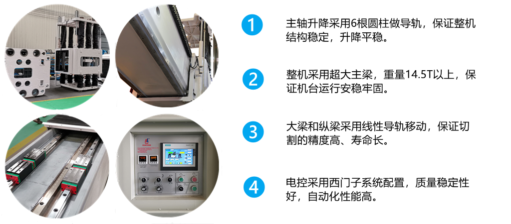 (3)横梁和立柱接纳台湾海威公司的直线导轨停止挪动,这确保了切割的高精度和较长的利用寿命。
